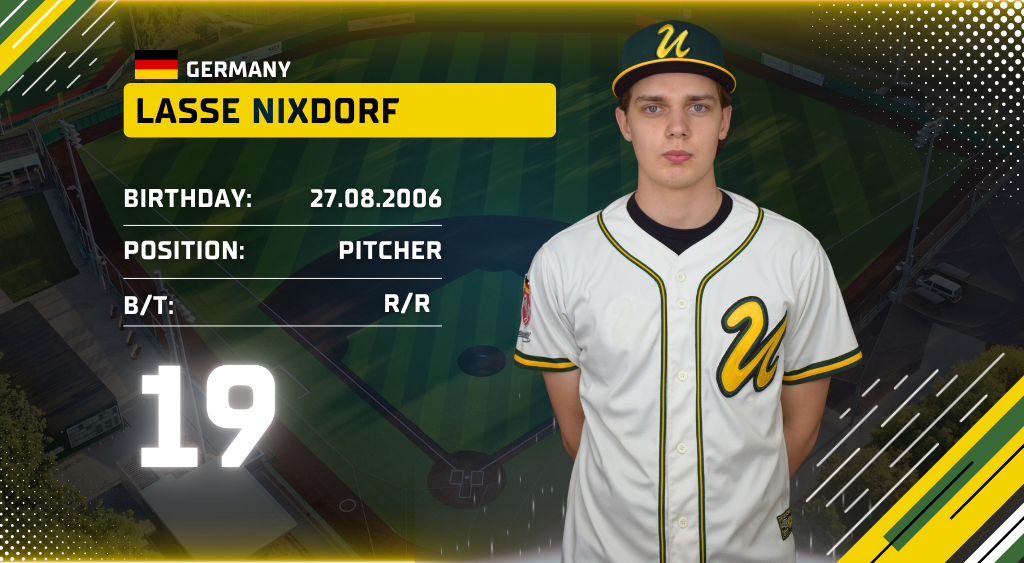 hinten v. li: Matt Kemp, Finn Bergmann, Jules Moser, Linus Nixdorf, Patrick Harrison, Mark Harrison, Steffen Dembowski, Lasse Nixdorf, Luca Kloppenburg, Florian Seidel, Luca Rammelmann, Octavio Medina vorne v. li. Brady (Batboy), Jan-Luca Vogt, Kyran Norgren, Jelte Bergmann, Florian Herwig, Felix Schwab, Jann-Mika Schierhorn, Victor Vahlberg, Shotaro Usui, Benjamin Thaqi, Emilio Götz