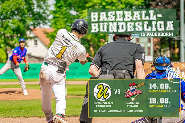 Ahorn-Ballpark Ahornallee 2, PaderbornBeginn Abendspiel: 18 Uhr - Einlass 17 Uhr Wir bitten um Beachtung: Tickets im online Ticketshop verfügbar bis Freitag 00:00 Uhr anschließend nur noch an der Tageskasse !! Tageskasse öffnet 1. Std. vor Spielbeginn. Kinder bis 15 Jahre freier Eintritt! ermäßigte Tickets ab 16 Jahre für Schüler/Stundenten/Rentner/Behinderte - ein Nachweis ist erforderlich. Das Mitbringen von Speisen und Getränken ist nicht gestattet! Stornierung oder Rückerstattung … Continued